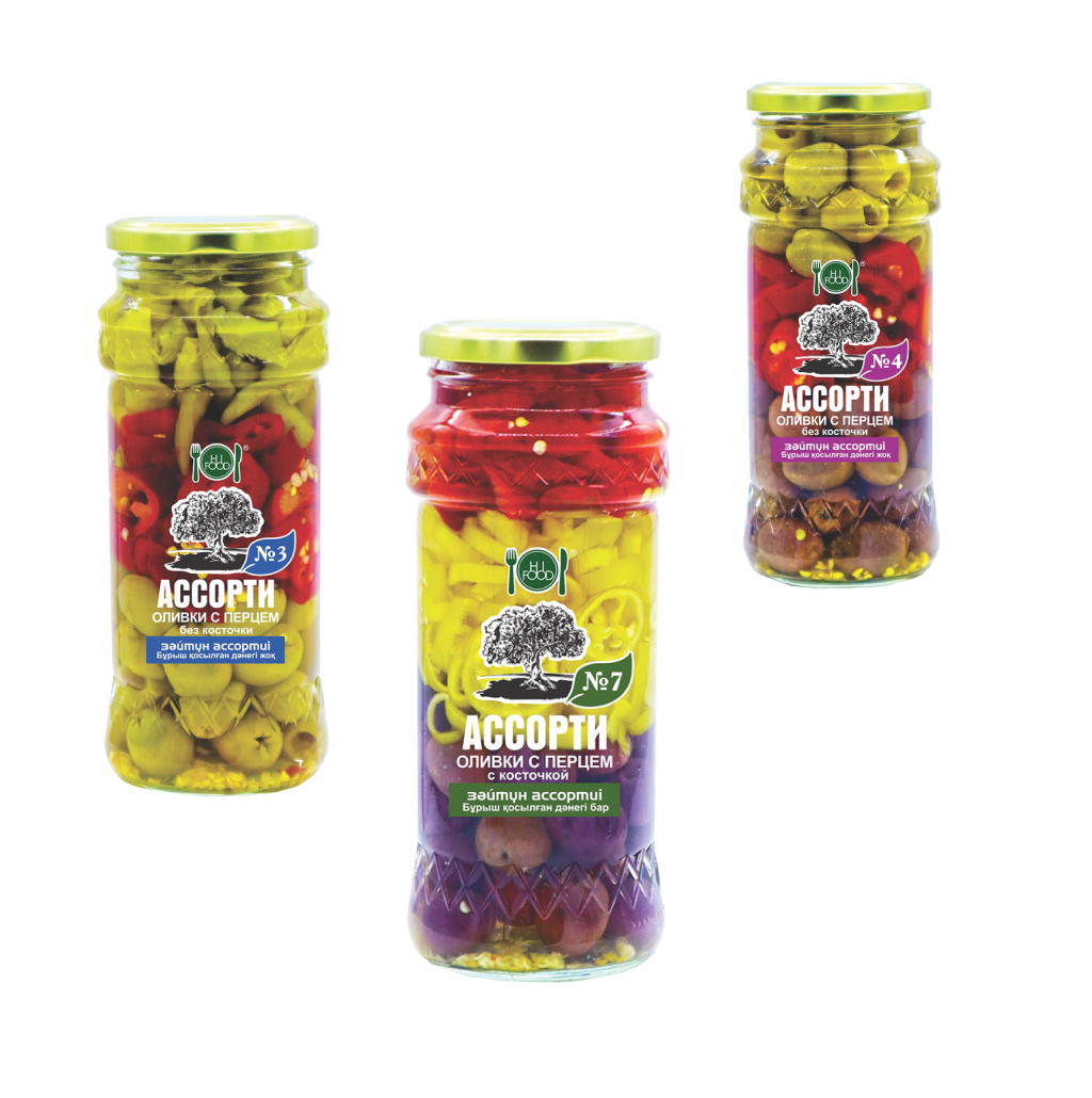 В ассортименте — оливки с косточкой и без, зелёные и чёрные, с начинками из перца, миндаля или анчоусов. Идеально подходят для закусок, салатов и изысканных блюд средиземноморской кухни.