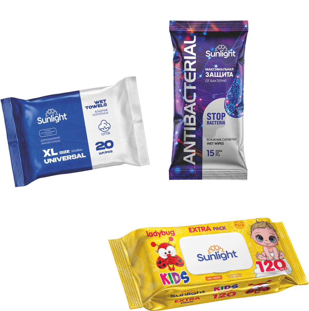В ассортименте — влажные полотенца с различными ароматами и без отдушек, в индивидуальной и семейной упаковке. Идеально подходят для повседневного использования, путешествий и гигиены вне дома.