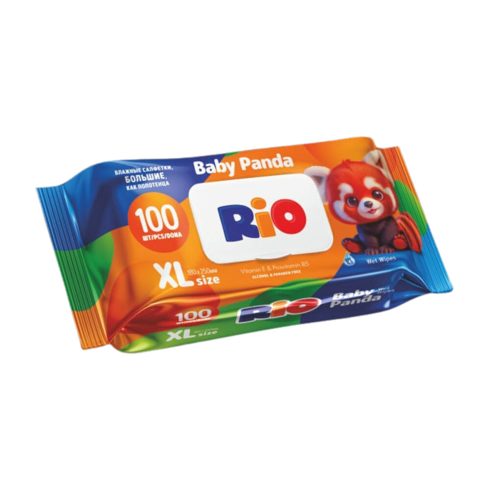 “Влажные полотенца RIO Baby XL, 18×25 см, 100 шт — деликатный уход с кремом для нежной кожи малышей.