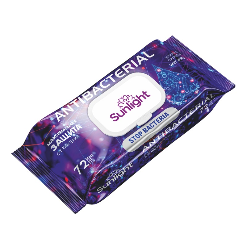 Влажные салфетки SUNLIGHT Antibacterial, Violet/Blue, 72 шт (1*20)
