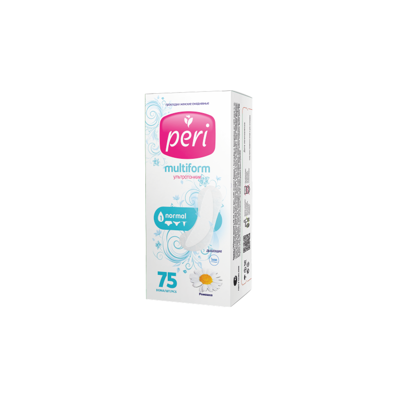 “Гигиенические ежедневные прокладки PERI MULTIFORM Ромашка, 75 шт — комфорт и мягкость с натуральным ароматом ромашки.