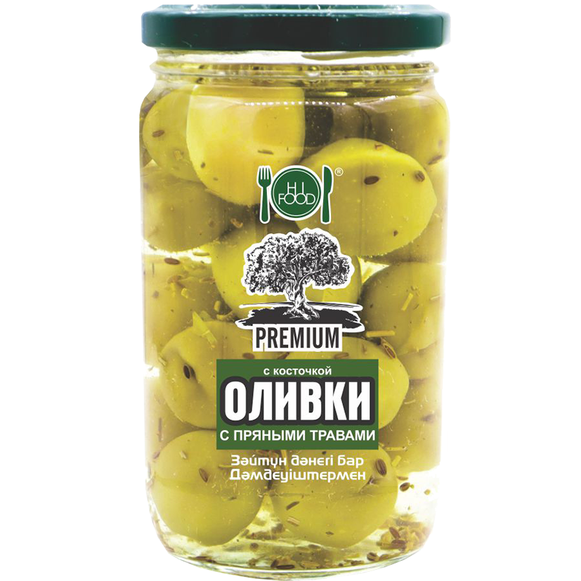 Оливки Премиум “HiFood” с косточкой с пряными травами 350гр